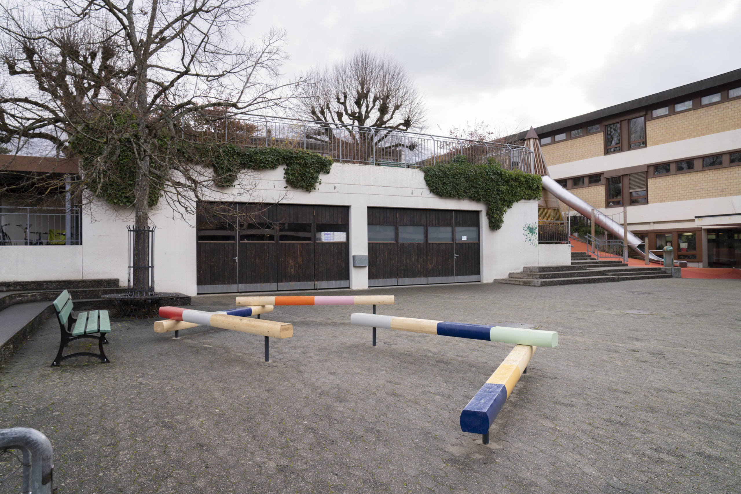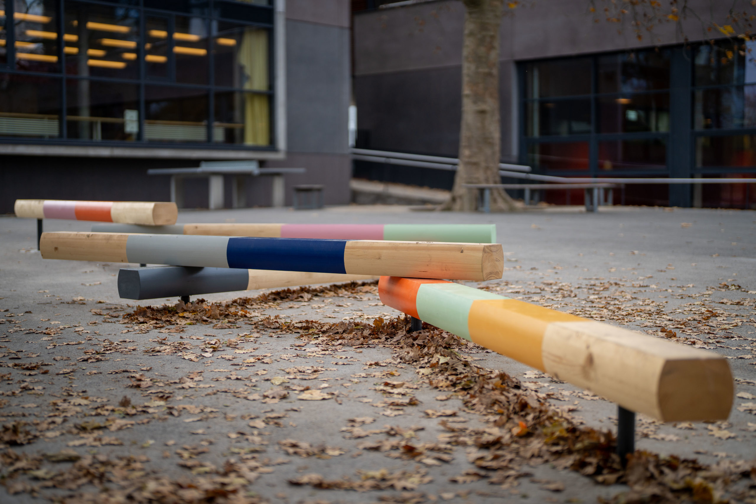 Des étudiants de l’institution lausannoise ont été mandatés pour concevoir un banc symbolisant le « bien vivre ensemble », produit en trois exemplaires et installés dans le préau de chacune des écoles.