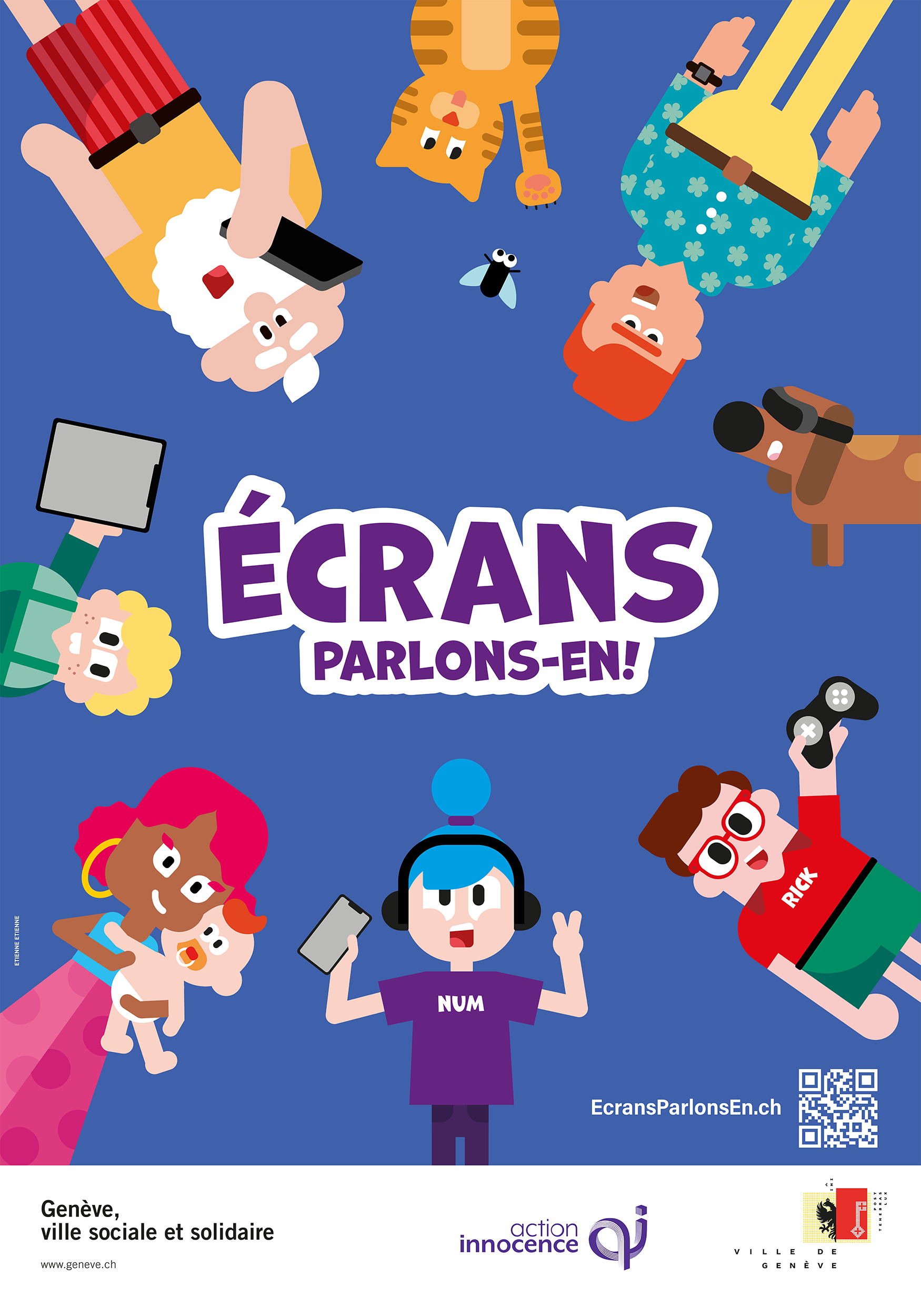 Aujourd’hui, à nouveau réunies, le Département de la cohésion sociale et de la solidarité et la Fondation Action Innocence souhaitent, avec la campagne Ecrans, parlons-en ! s’adresser à la population genevoise et leur parler des écrans de manière positive et constructive, non diabolisante et non culpabilisante.